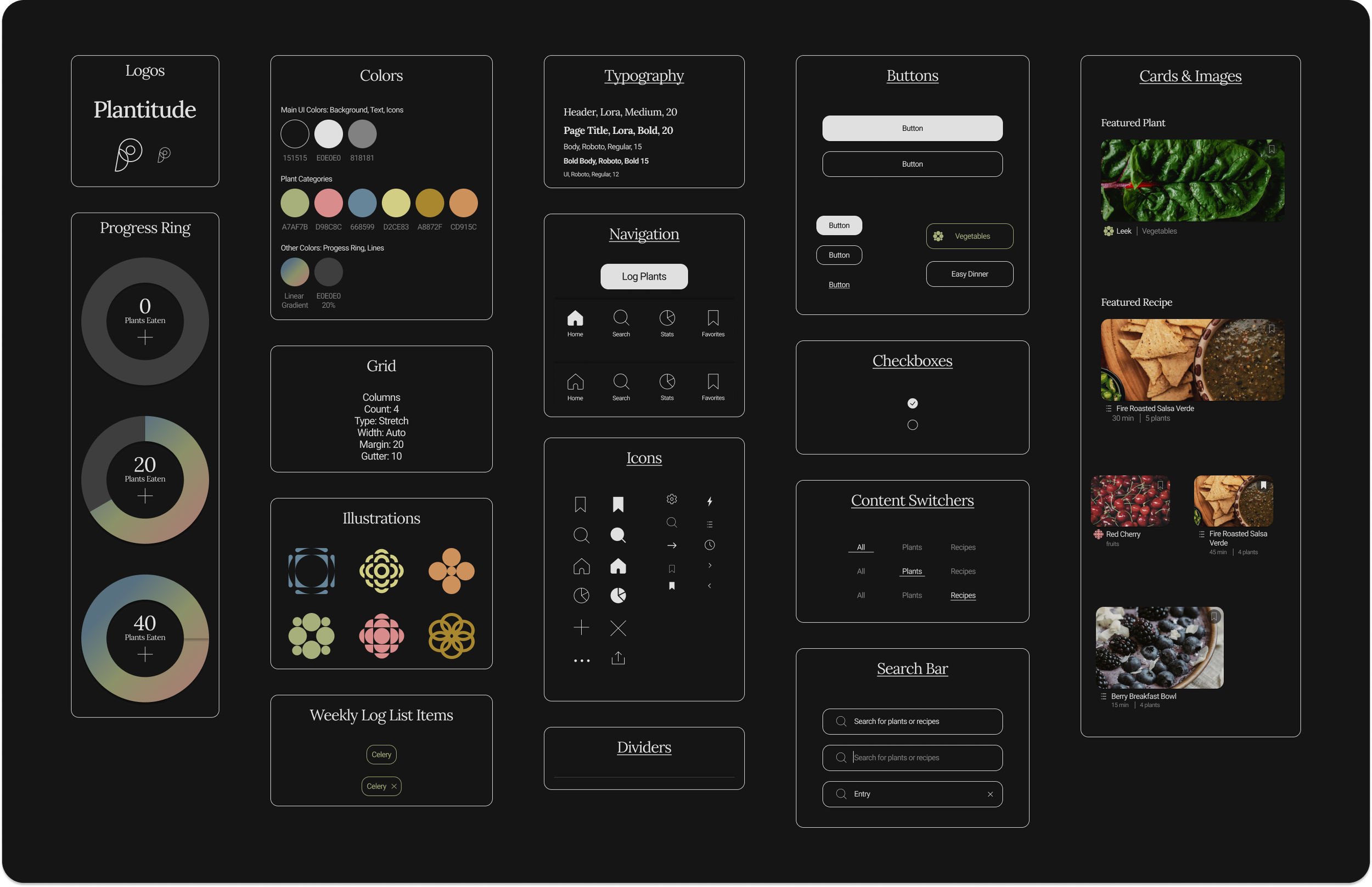 In response to lo-fi testing and review of initial research I determined that the ‘Create a Meal’ feature should be eliminated for the MVP. A key pain point for users was their lack of familiarity with different plant foods and a feeling that these were less convenient foods to prepare. The ‘Recipes’ section can replace logging a multi-plant meal for this version to better address this issue.