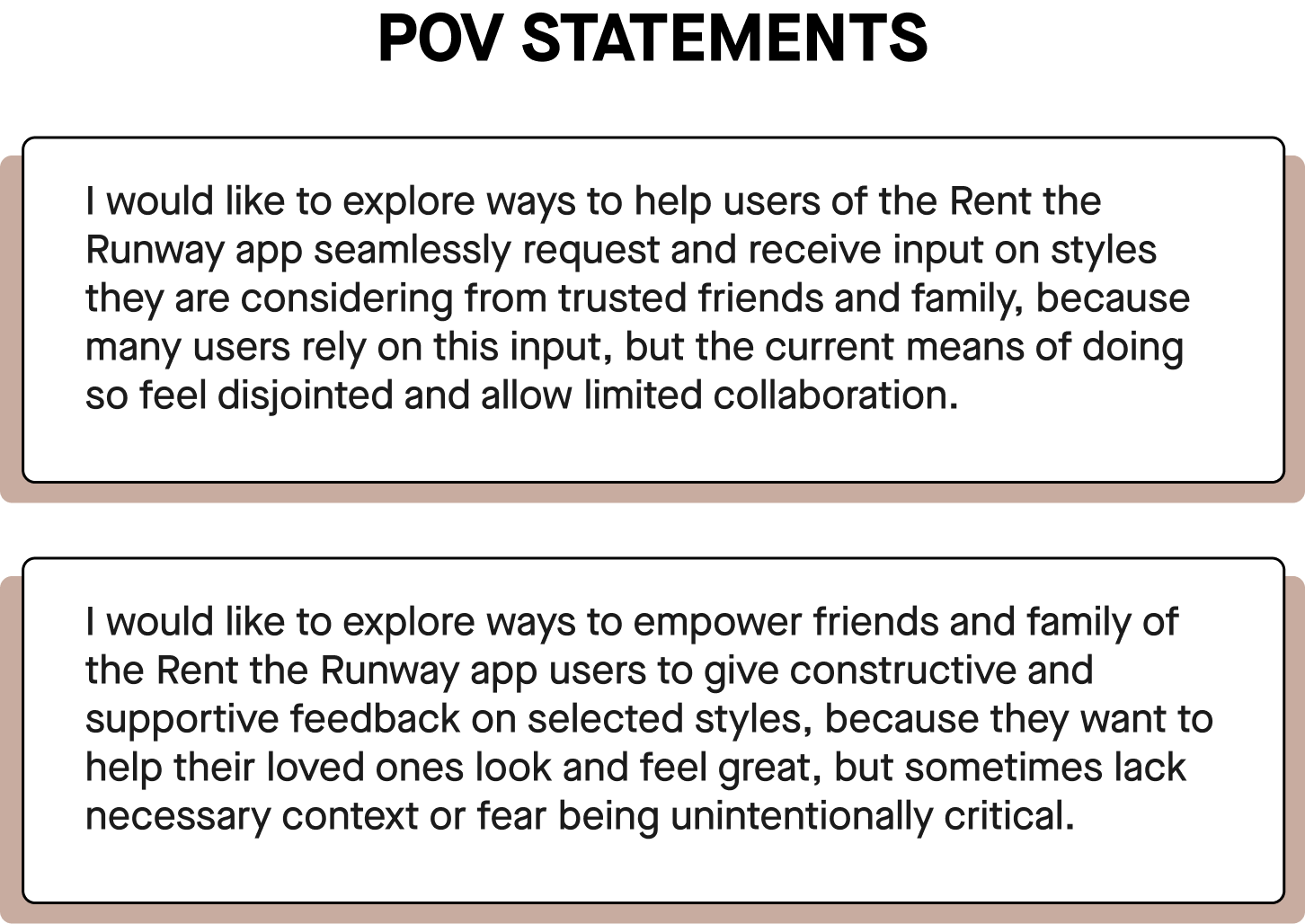 My goal was to determine if and how a social feature could potentially improve the experience of the Rent the Runway app.